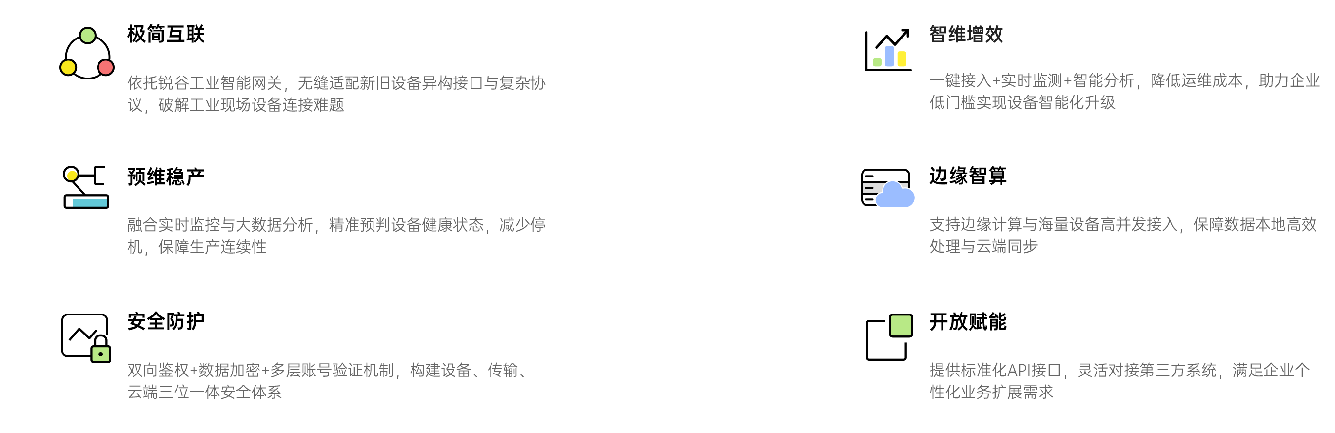 銳谷智聯(lián) GoRMS 裝備遠(yuǎn)程運(yùn)維云基于銳谷工業(yè)互聯(lián)端云一體化平臺(tái)(GoCloud)開發(fā),通過工業(yè)智能網(wǎng)關(guān)采集工業(yè) 設(shè)備、機(jī)械設(shè)備、制造裝備等現(xiàn)場設(shè)備的運(yùn)行數(shù)據(jù),并實(shí)時(shí)將數(shù)據(jù)傳輸至平臺(tái),構(gòu)建面向設(shè)備生產(chǎn)商及使用單位的智 能化運(yùn)維平臺(tái),提供全面監(jiān)測、智能告警、數(shù)據(jù)運(yùn)營等多項(xiàng)服務(wù),助力客戶快速打造云端設(shè)備管理運(yùn)維系統(tǒng)。客戶通 過該平臺(tái)可直觀了解設(shè)備的實(shí)時(shí)狀態(tài),強(qiáng)化生產(chǎn)過程控制,確保生產(chǎn)安全,加速工業(yè)企業(yè)智能化升級(jí)改造,實(shí)現(xiàn)產(chǎn)品 質(zhì)量、生產(chǎn)效率、服務(wù)質(zhì)量和經(jīng)濟(jì)效益的躍升,促進(jìn)產(chǎn)品改進(jìn),增強(qiáng)企業(yè)競爭力。
